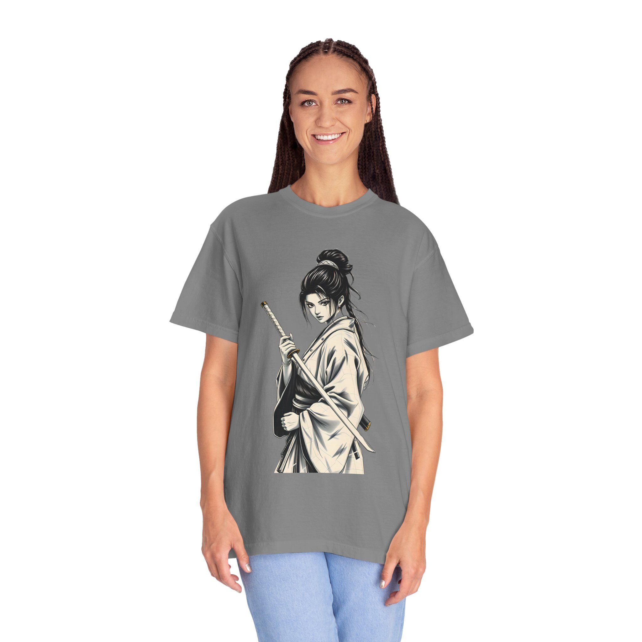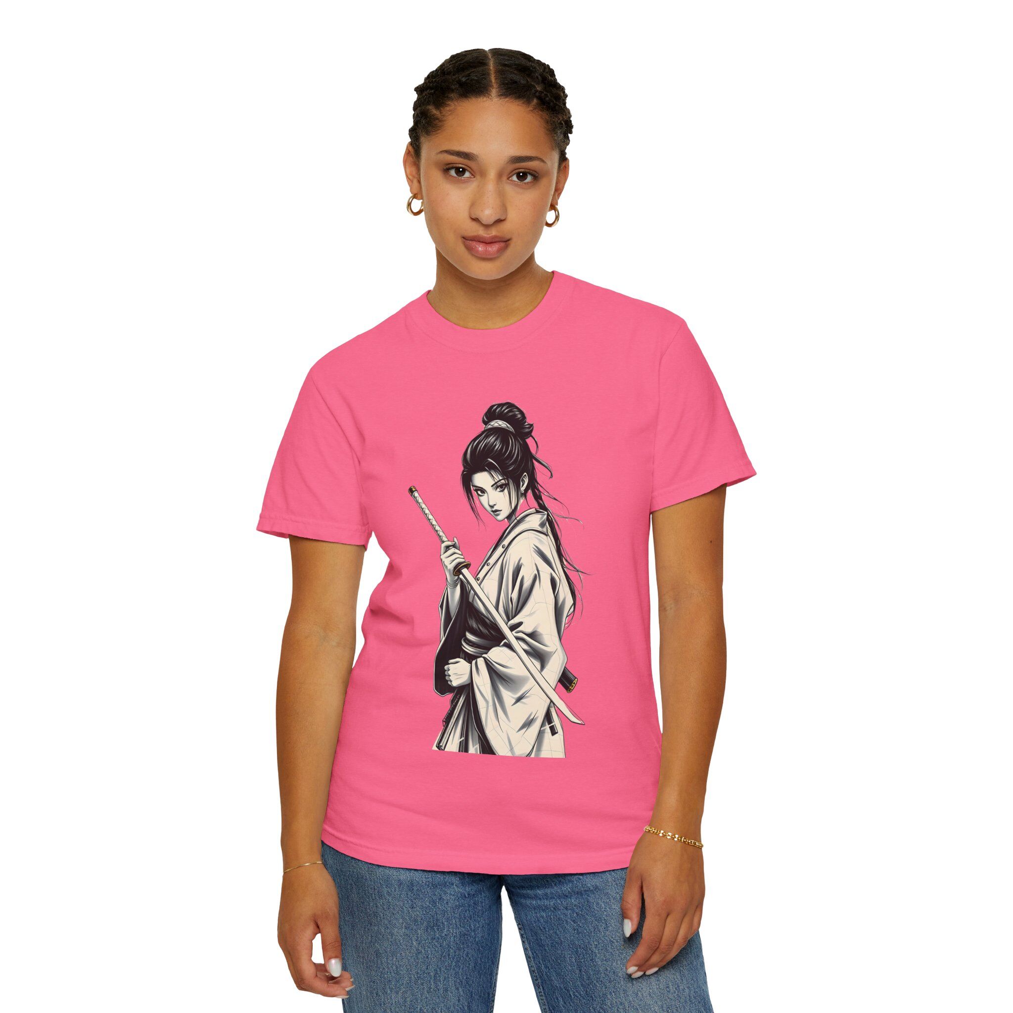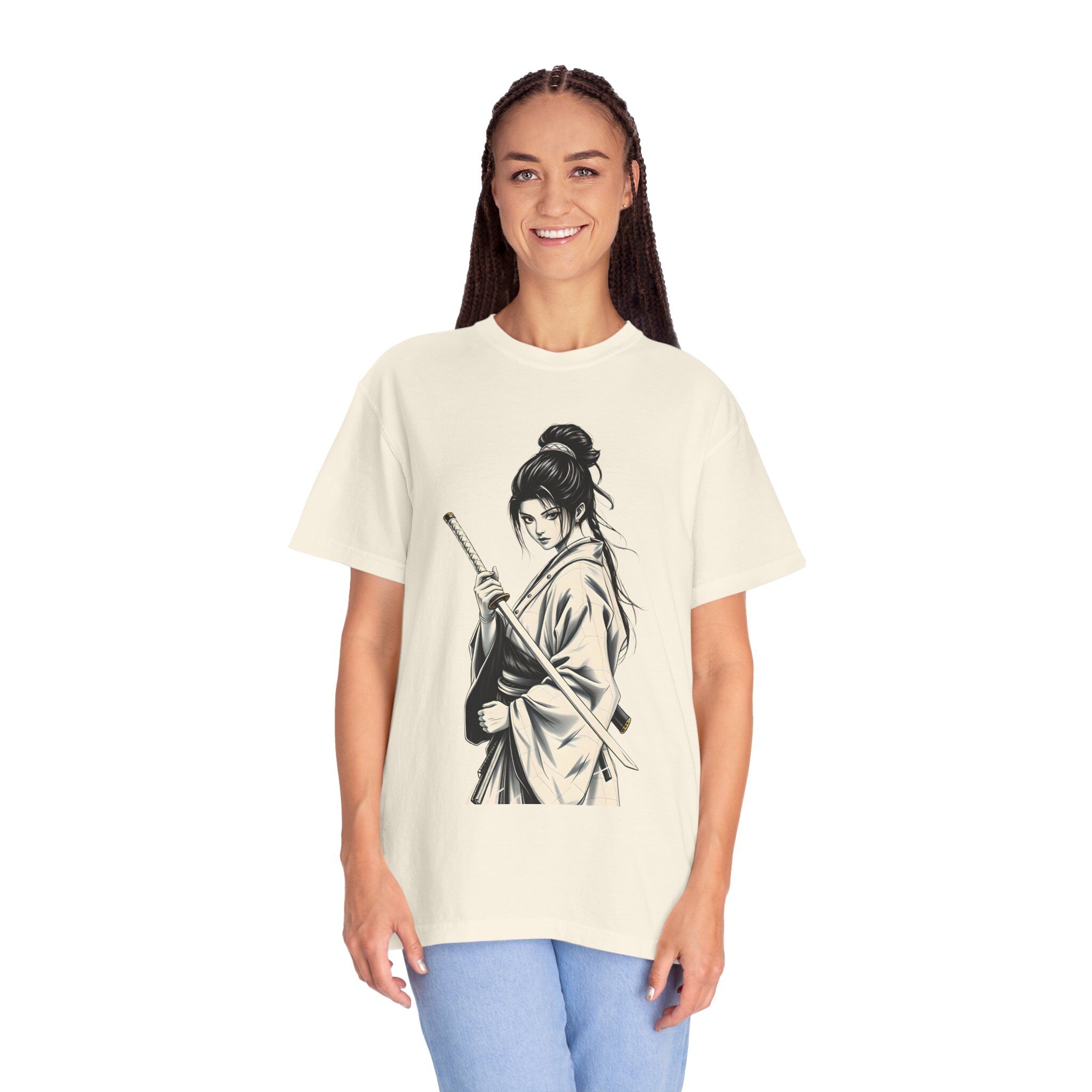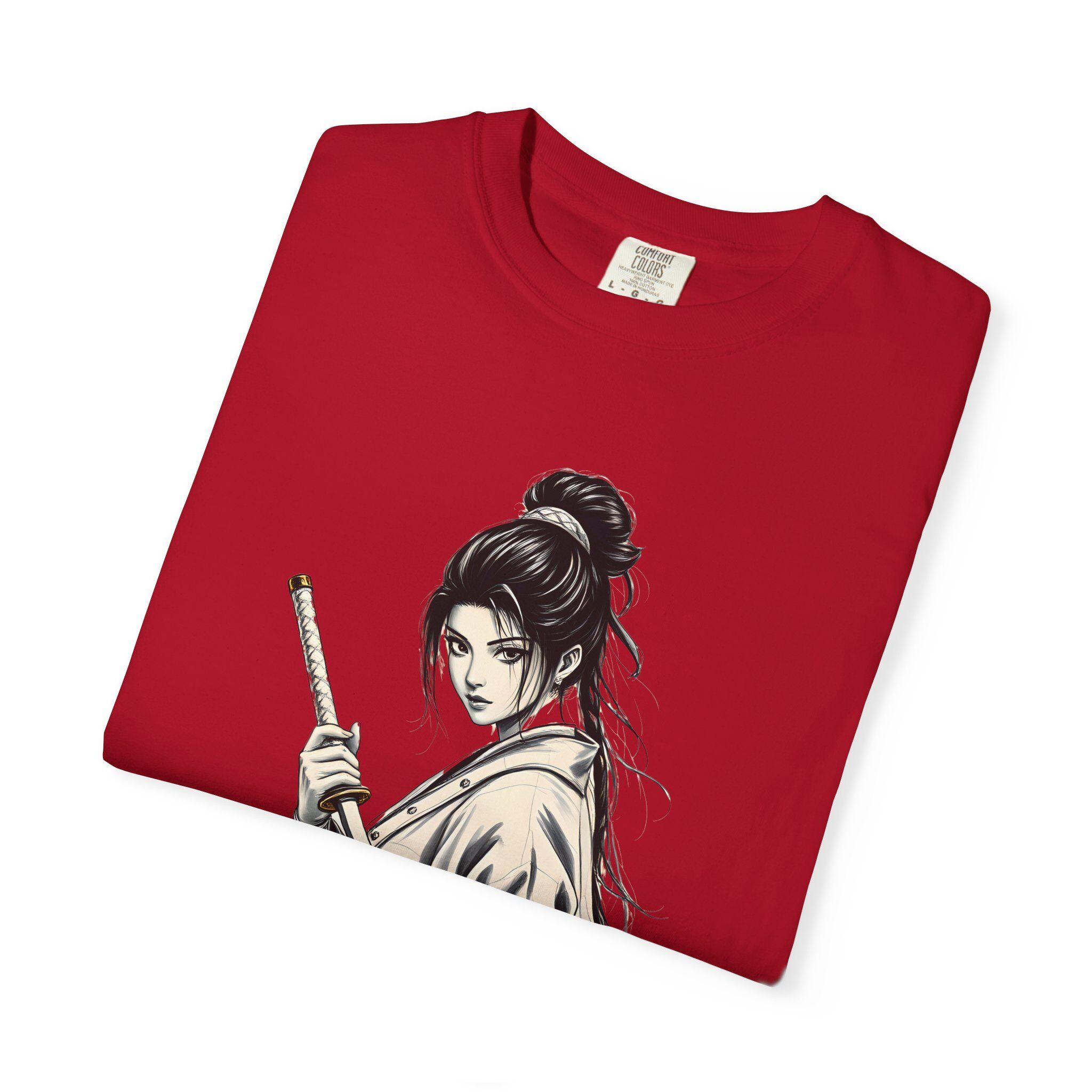A unisex Samurai graphic tee featuring an image of a female samurai warrior. This unique design gives a bold and empowering vibe, perfect for those who appreciate warrior culture and history. This samurai t-shirt is great for those looking for an eye-catching piece for casual wear or a statement piece for a themed event. Relevant for events like Comic-Con, cosplay conventions, or samurai-themed parties. Don’t wait. Get this samurai warrior t-shirt now!