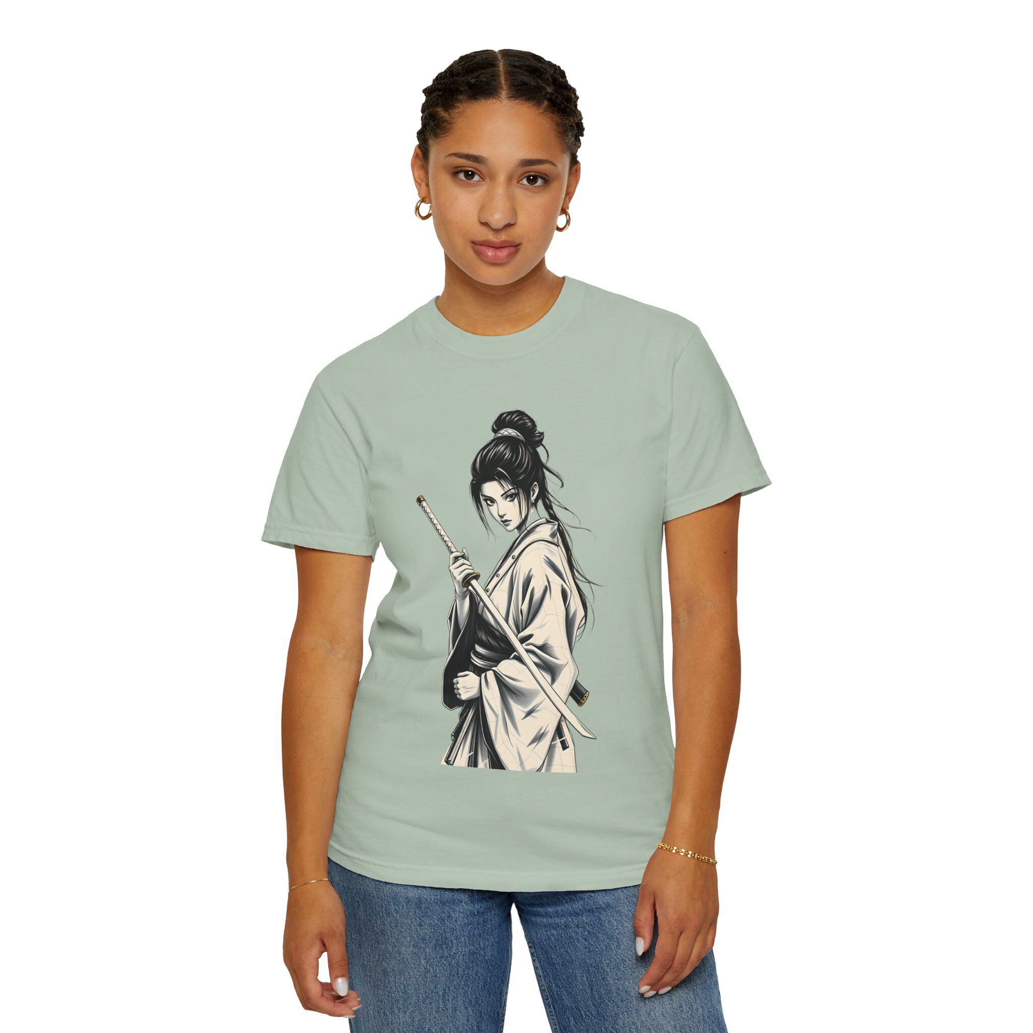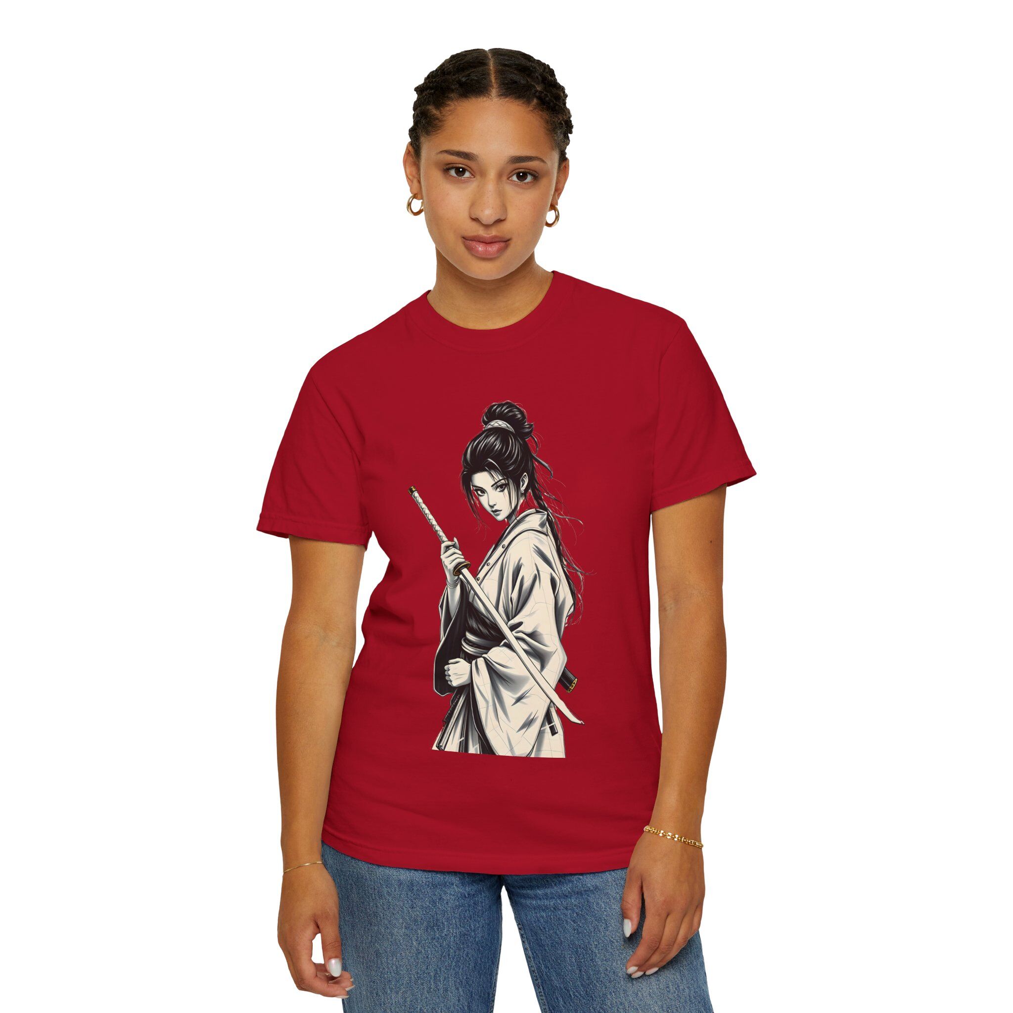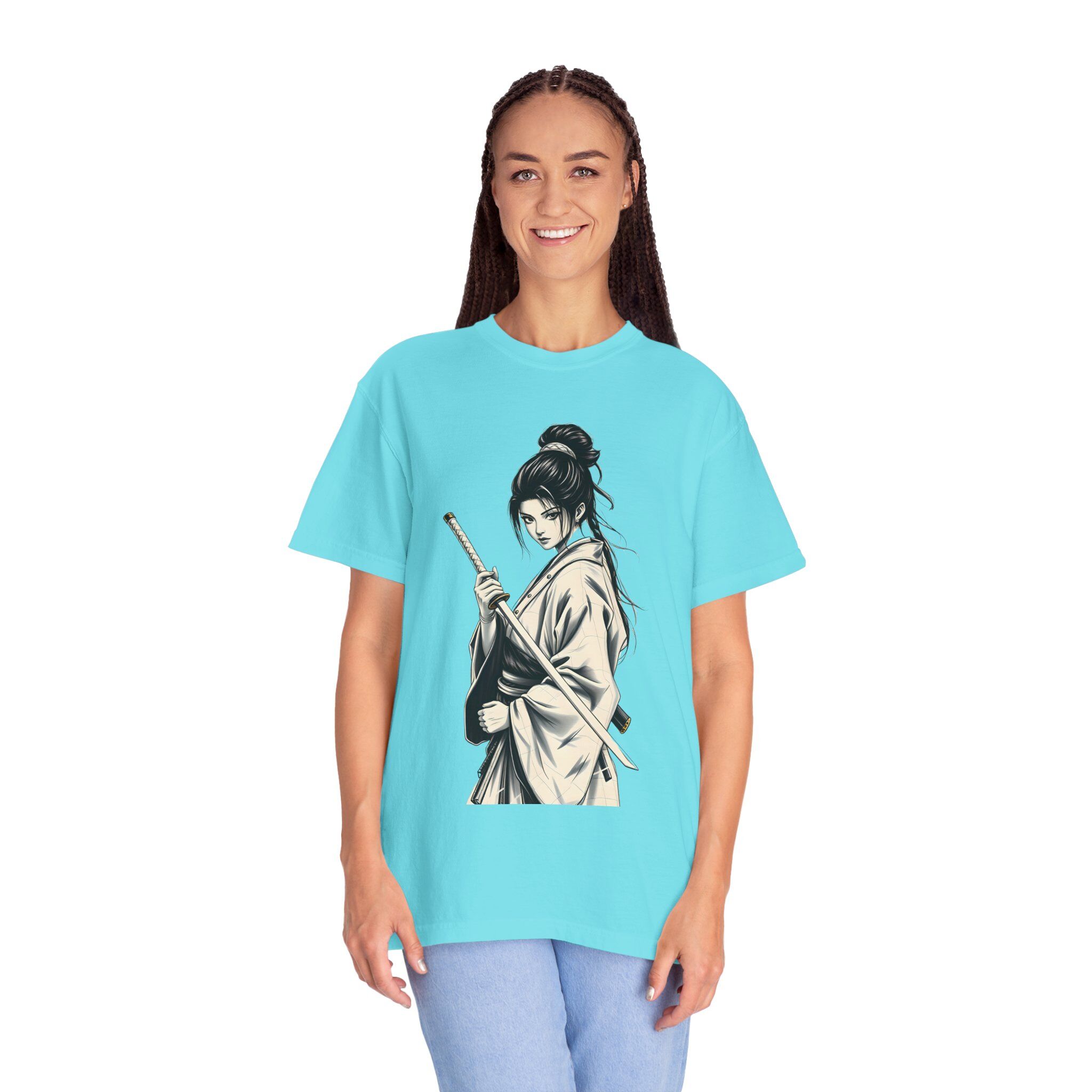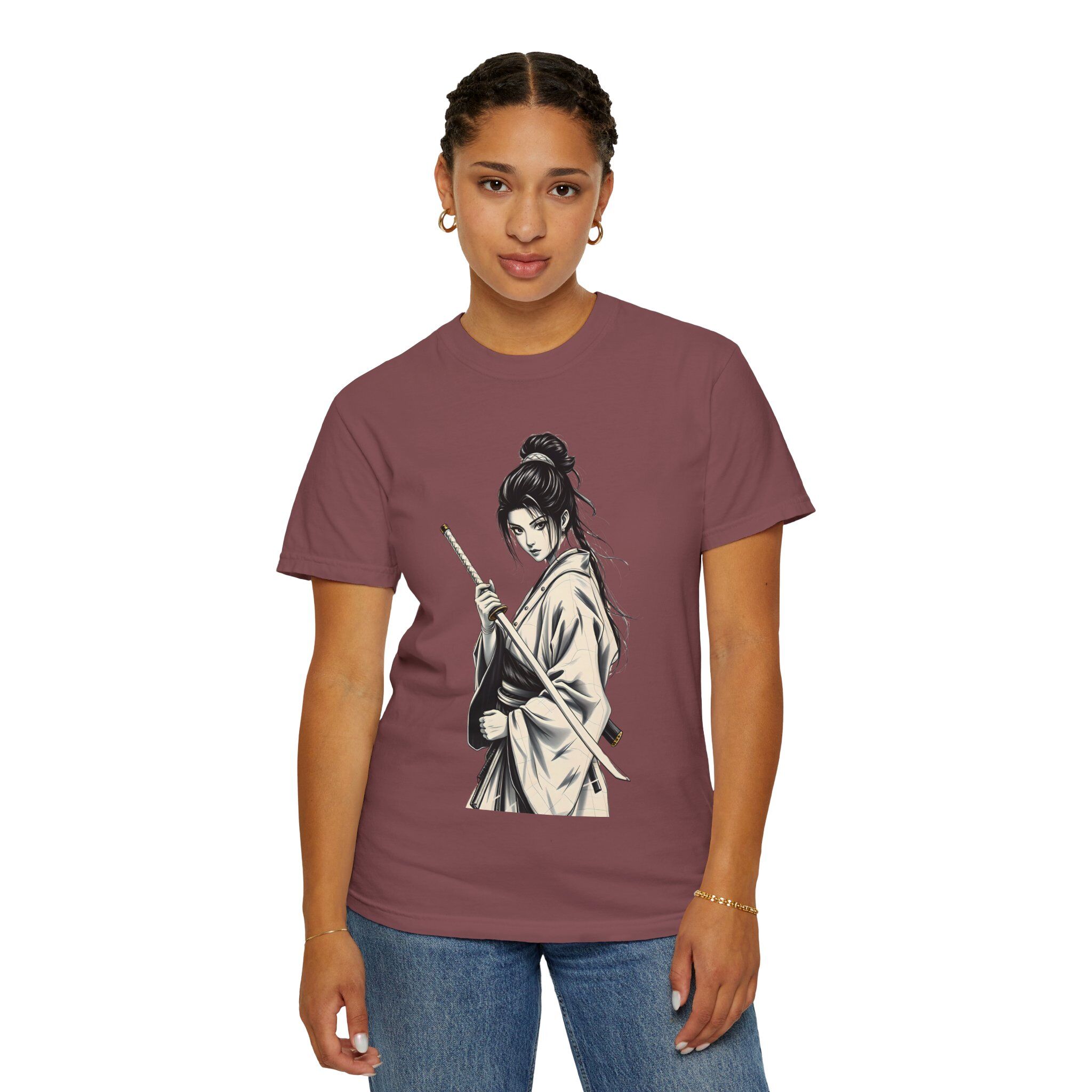 A unisex Samurai graphic tee featuring an image of a female samurai warrior. This unique design gives a bold and empowering vibe, perfect for those who appreciate warrior culture and history. This samurai t-shirt is great for those looking for an eye-catching piece for casual wear or a statement piece for a themed event. Relevant for events like Comic-Con, cosplay conventions, or samurai-themed parties. Don’t wait. Get this samurai warrior t-shirt now!